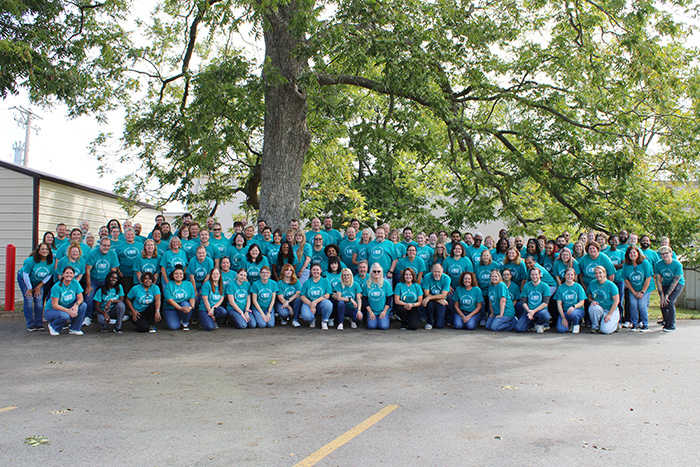 Our team broke up into 10 different groups to volunteer their time with our community partners at KidSmart, APA St. Louis, Foster & Adoptive Care Coalition, Missouri Veterans Endeavor, Nurses for Newborns, the Women’s Safe House, L’Arche, AmeriCorps in St. Louis, as well as Welcome Home and Coyote Hill in Columbia, MO.